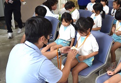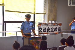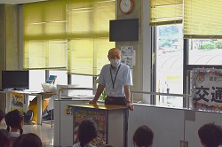 みんな、指導員やおまわりさんの説明を真剣に聞いていました。